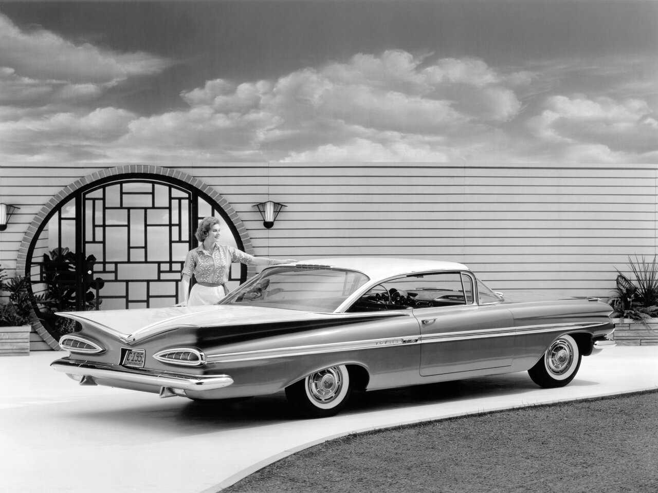 1959-й год подарил Шевроле Импале «хвост русалки» с необычными аэродинамическими отростками на задней части кузова и каплевидные «глаза-фонари» на корме, которые пришли на смену шести круглым фарам.