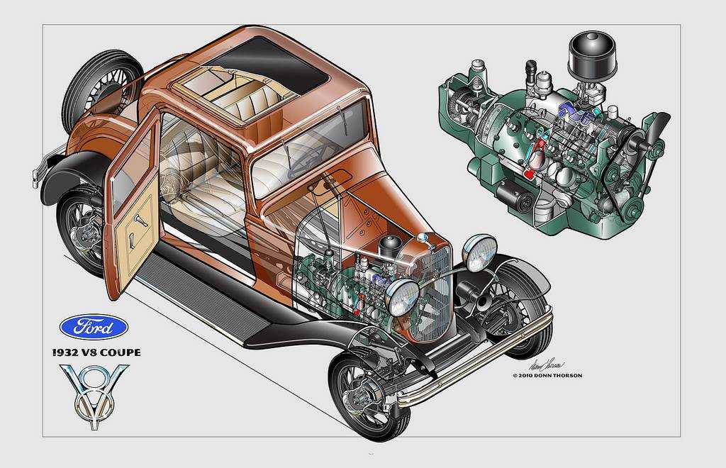 В 30-х годах прошлого столетия 8-цилиндровые двигатели стояли только на дорогих моделях Cadillac и Rolls-Royce, а моторы бюджетных авто имели преимущественно 4 цилиндра. И только главный конкурент Форда, Шевроле, выделялся из этого ряда