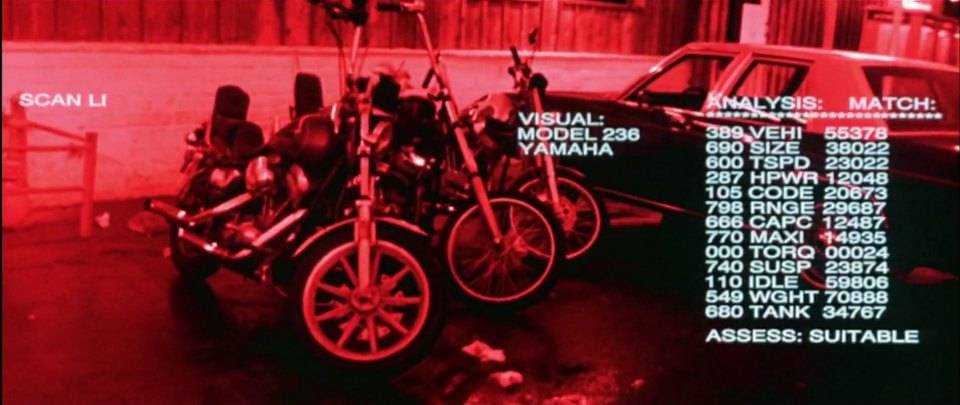 в сцене, когда персонаж Арнольда Шварцнеггера добывает себе «оденжду, ботинки и мотоцикл» фигурировало еще несколько мотоциклов марки Harley-Davidson. Это Harley-Davidson FXWG Wide Glide, и Shovelhead Custom Chopper — в кадре это мотоцикл стоящий посередине.