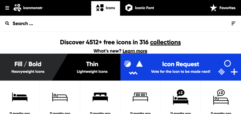 - Iconmonstr – векторные и простые иконки, можно найти что-то стоящее для своего проекта, но многие варианты довольно посредственные.