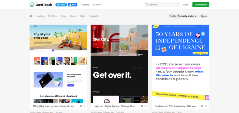 - Land-book – ну куда же без него, это целый рай для веб-дизайнера. Здесь вы сможете найти колоссальное количество уже реализованных и крутых сайтов.