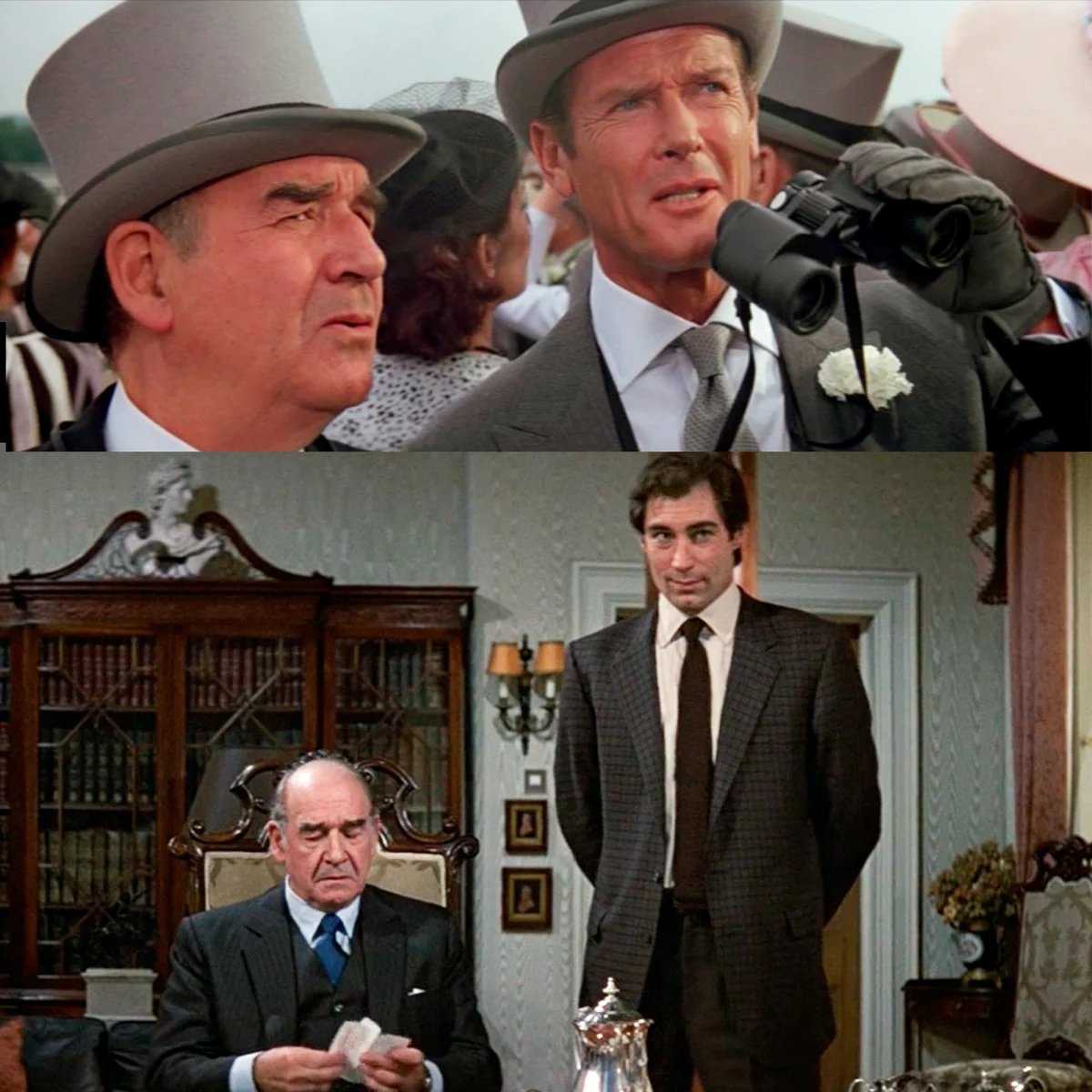 Роберт Браун в роли M с Бондами Муром и Далтоном