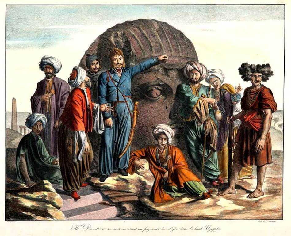 Узнав об огромных сокровищах египетских гробниц, свою часть пыталась заполучить и Франция. Параллельно с Бельцони, раскопки в Египте проводил другой итальянец: Бернардино Дроветти. У них не раз были ссоры с Бельцони из-за того, что фактически они работали на разные страны: Бернардино сотрудничал с французским посольством.