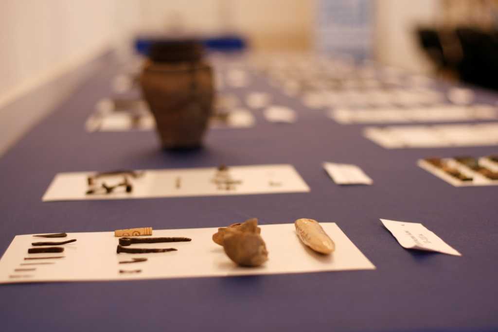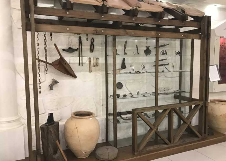 В этом месте представлены уникальные археологические находки, которые относятся к периодам от каменного века до развитого средневековья, и материалы, связанные с их раскопками.