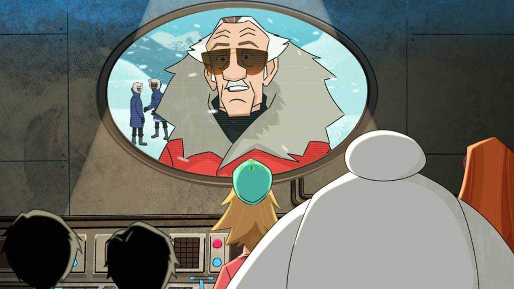 Пожалуй, самое абсурдное и неожиданное камео Стэна Ли — появление в мультфильме вечных конкурентов DC , единственное в своём роде. Более того, Стэн здесь откровенно хохмит по этому поводу: сначала говорит, что он в мультике DC и ему нужно уходить отсюда, а позже — что ему наплевать, что это не Марвел, он обожает камео.