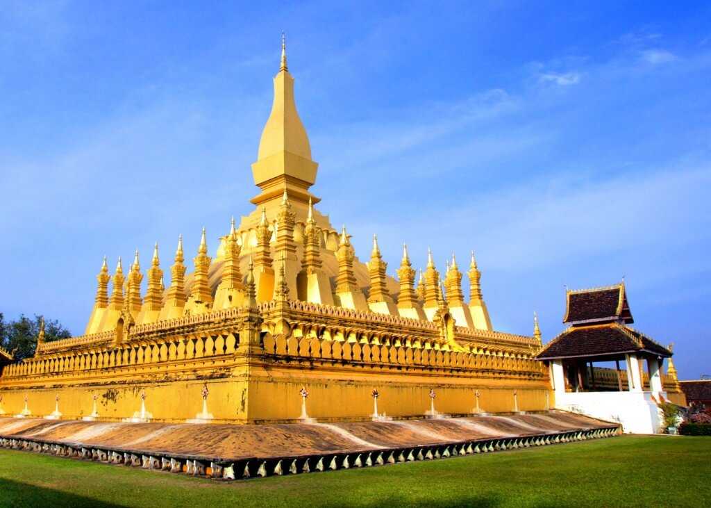 «Великая ступа в Лао» — наиболее почитаемый в Лаосе храм, который стоит с XVI века на развалинах кхмерского святилища. Это ступа с несколькими террасами, которые символизируют уровни духовного просветления от низшего (материальной жизни) до высшего (мира небытия). Позолоченный храм выглядит настолько единым, что это даже кажется нереальным — будто картинка.