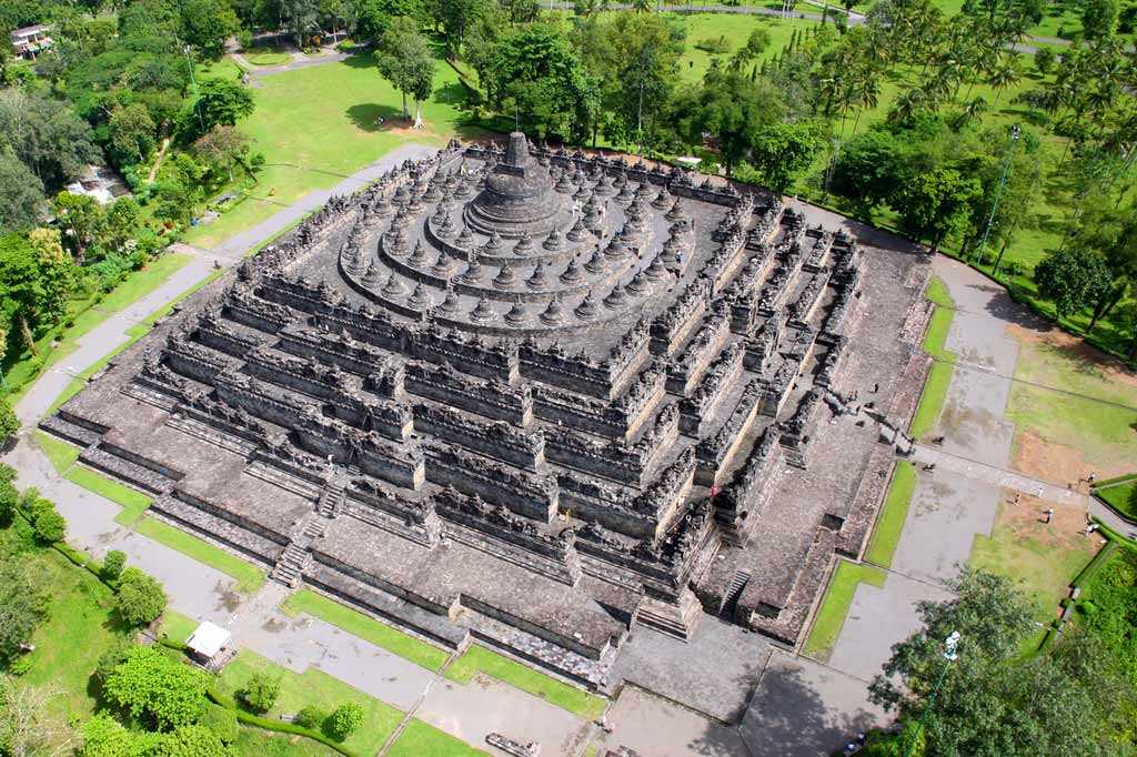 Огромная ступа, состоящая из миллионов каменных блоков, выглядит монументально еще издалека. В отличие от большинства других буддийских храмов, он не сияет золотом, но это не помешало ему стать крупнейшим в мире.