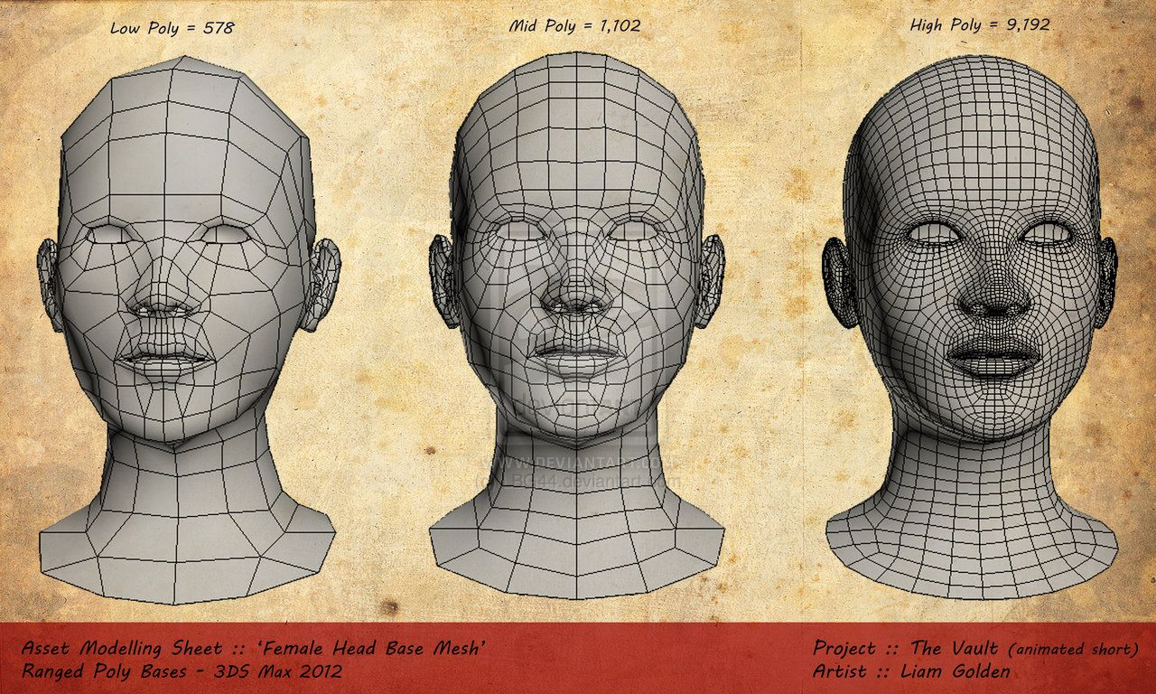 Низко-, средне- и высокополигональная модели лица