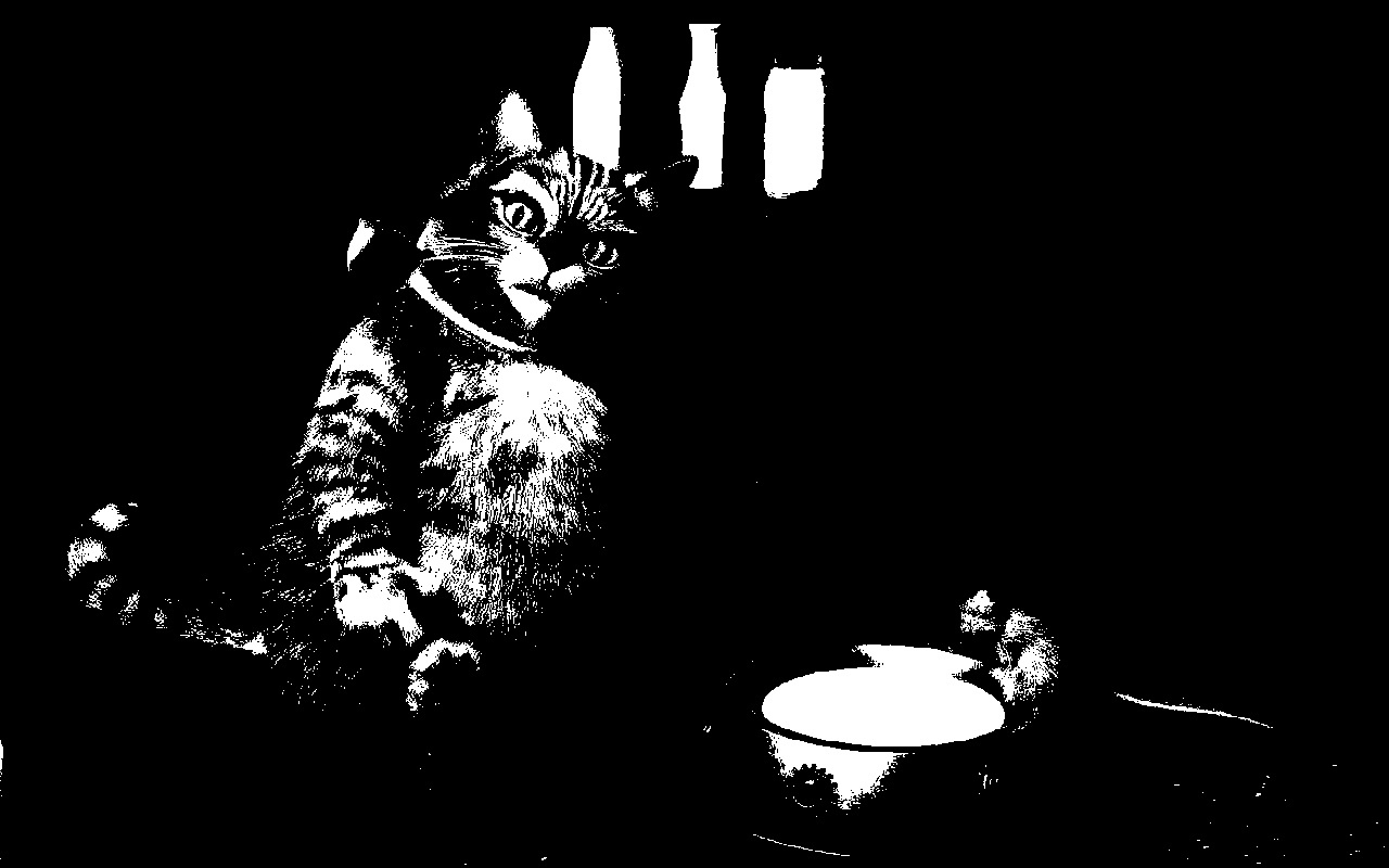 - Командой threshold превратили все пиксели, которые темнее (меньше) 127 в 0. А все пиксели, которые ярче (больше) 127 — в 255.