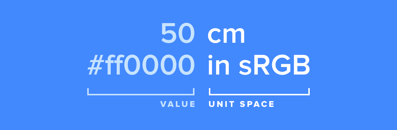 Я написал, что у значений, указанных выше, нет единиц измерения или цветового пространства. Это не совсем верно. Во многих случаях есть цветовое пространство по умолчанию, которое предполагается, если изначально данных о цветовом пространстве нет.