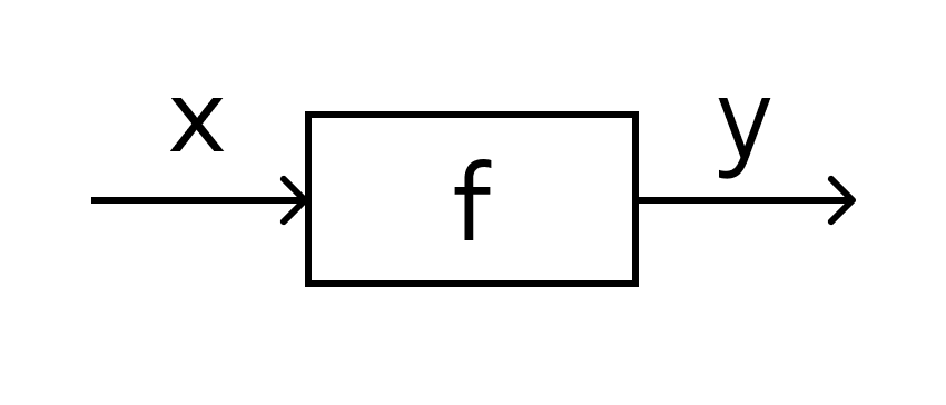 В технической литературе можно встретить такие определения функции для устройств, в которых на вход подается х — на выходе получается у. Схематично это выглядит так: