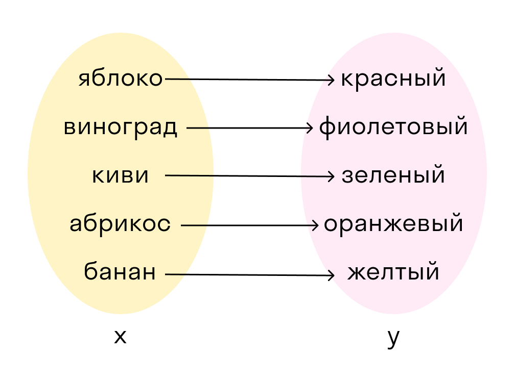 Так на примере с фруктами можно показать соответствие, которое нельзя назвать функцией: