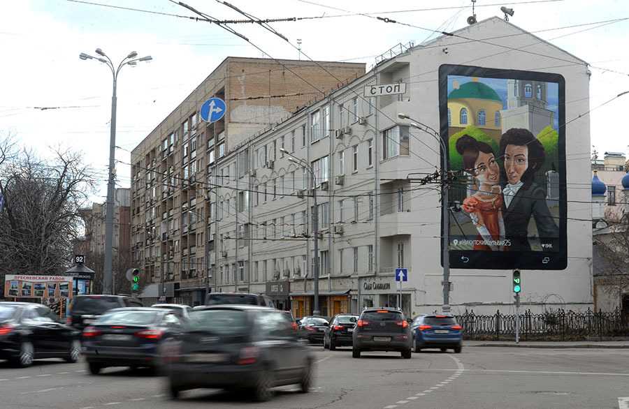 На торец расположенного на Никитском бульваре дома №25 в 2015 году было нанесено граффити, представляющее собой селфи Александра Пушкина и Натальи Гончаровой. За спинами героев виднеется храм Вознесения Господня в Сторожах.