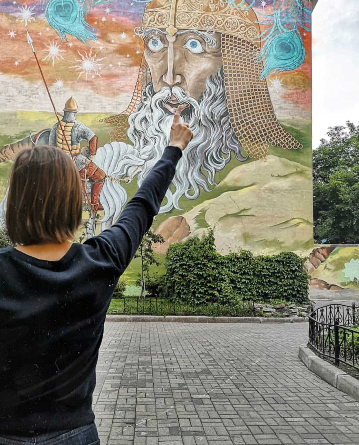 Дворик искусств является одним из самых знаменитых дворов Петербурга, отчасти благодаря масштабному граффити «Руслан и Голова», созданому по мотивам поэмы Александра Пушкина «Руслан и Людмила». А после, здесь стали появляться и другие символичные арт-объекты посвященные героям пушкинских сказок – витязь, говорящая голова и кот-баюн.