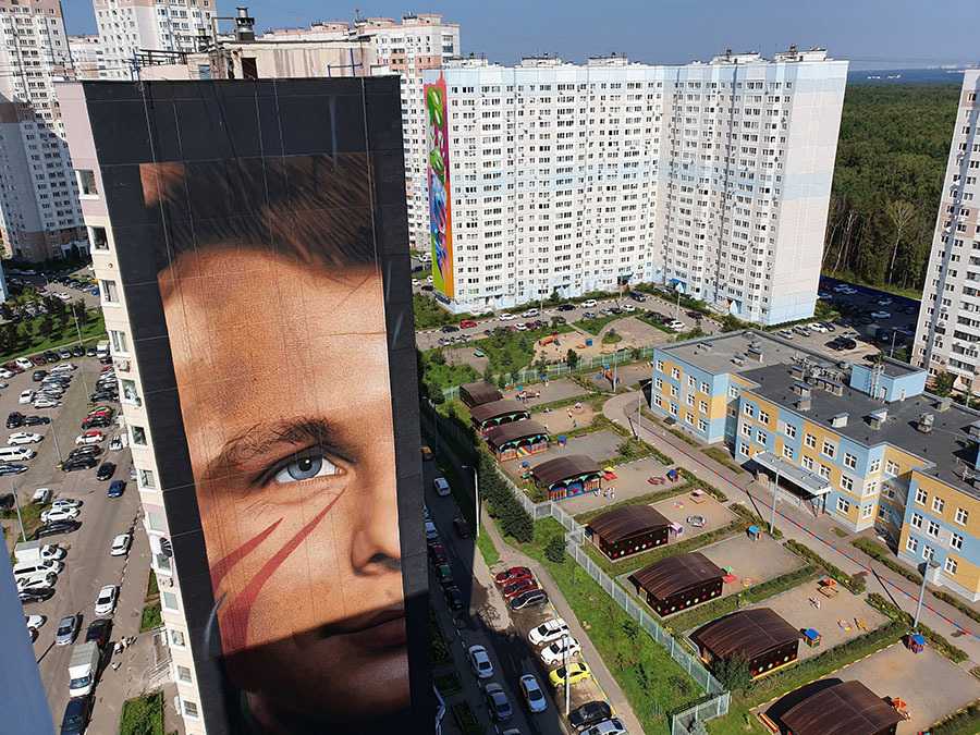 Граффити с изображением первого лётчика-космонавта Юрия Гагарина есть во многих российских городах, но самое масштабное появилось в подмосковном Одинцове летом 2019 года (на фасаде дома №25 по улице Кутузовская). Там в микрорайоне Трёхгорка проходил международный фестиваль уличного искусства Urban Morphogenesis «Культурный код», в рамках которого на многоэтажки города было нанесено более 50 изображений.