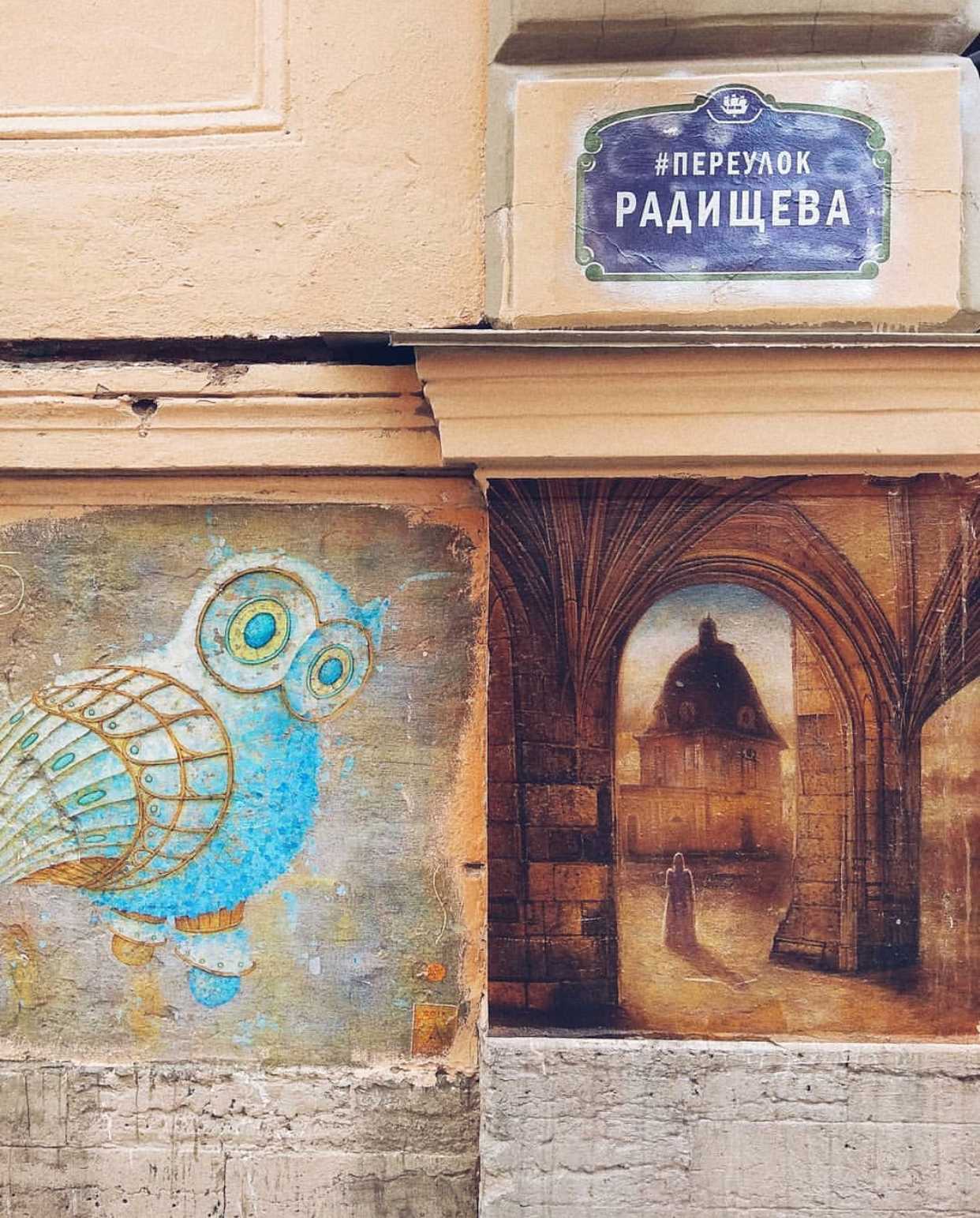 Переулок Радищева в центре Петербурга стал новой арт-галереей под открытым небом. По всем стенам улицы расположились удивительные фрески, граффити и акварельные картины совершенно разных художников – от Боттичелли до Владимира Колбасова. Но только один художник отвечает за то, чтобы на Радищева появились все работы – Олег Лукьянов.