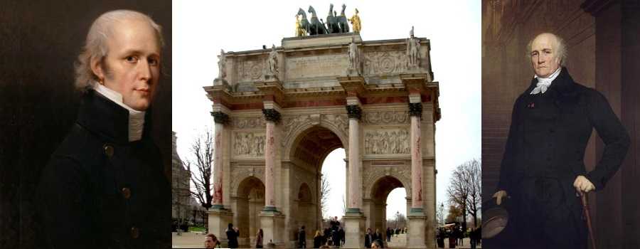Но сам император желал больше пышности и великолепия. Его придворными архитекторами стали Ш. Персье и П. Фонтен, ранее, в 1786-1792 гг., учившиеся в Италии, в Риме. Во Франции они оформляли интерьеры дворцов Мальмезон, Фонтенбло, Компьен, Лувр, Медон, Сен-Клу, Версаль, Тюильри, построили Триумфальную арку на площади Карусель в Париже, наподобие древнеримских.