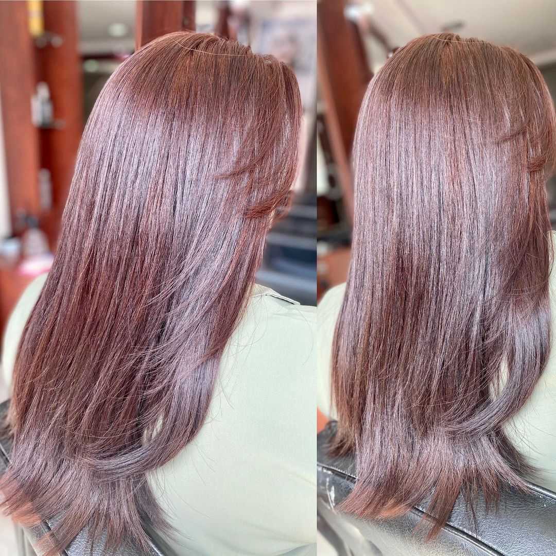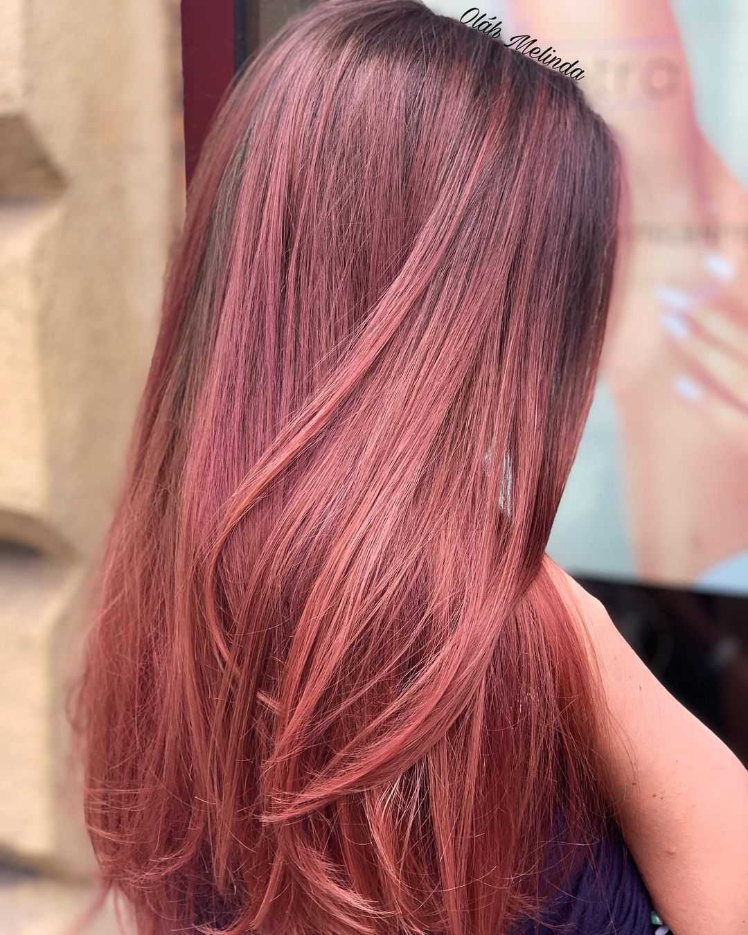 Цвет волос красное дерево – самый популярный долгое время. Он появился очень давно и помогал визуально скрывать первые проявления старения. У древесного цвета есть несколько тонов: от каштанового и коричневого до розового.