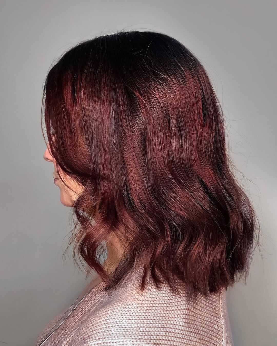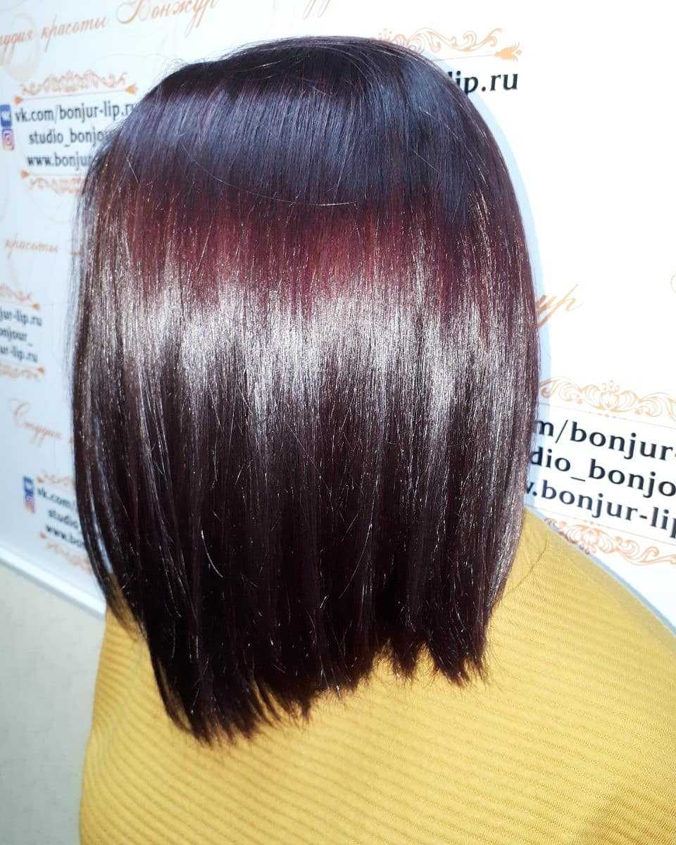 К благородному темно-красному цвету волос относятся тона: бургунди, бордовый, гранат и даже «красное дерево». Темно-красные волосы интересно смотрятся в тонах спелой вишни.