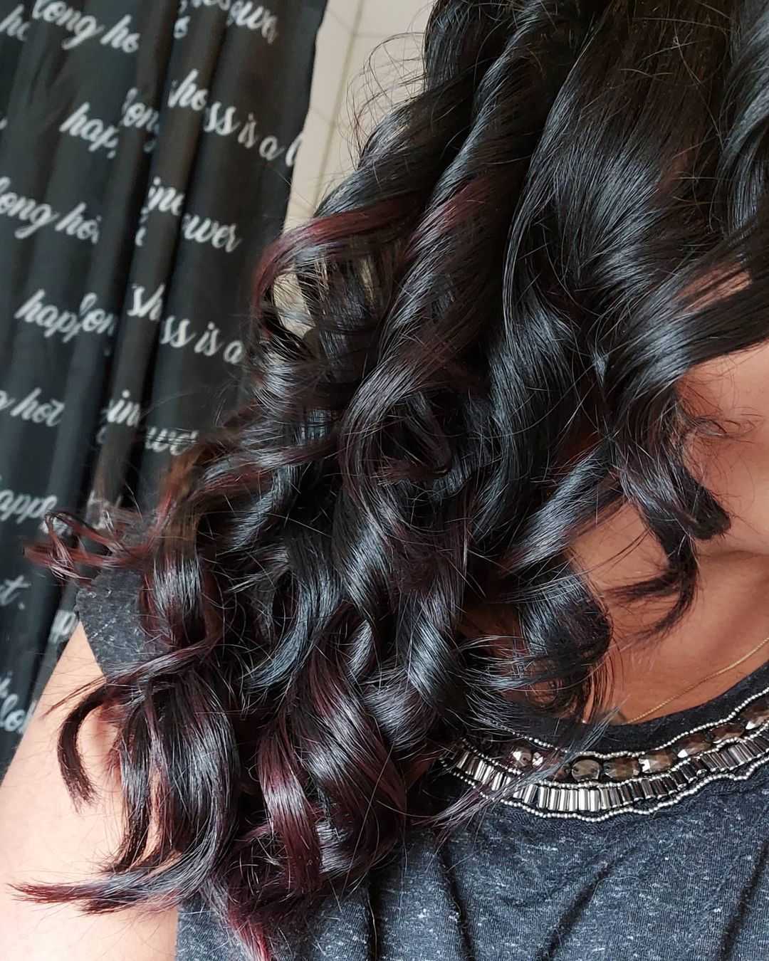 Черно-красный цвет волос характеризуется основным черным с красным отливом. Но получить такое тонирование не всегда удается. Часто черно красные волосы называют еще и сочетание одноименных цветов в разных техниках окрашивания, например, омбре, мелирование или градиент.