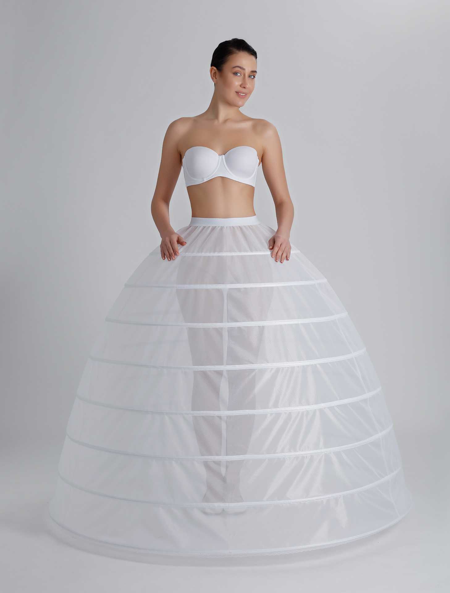 В зависимости от модели платья, подбираются различные типы подъюбников. Чем большим количеством колец они оснащаются, тем пышнее оказывается наряд. Правда, кринолин необходим далеко не только лишь для создания дополнительного объема. С его помощью платье держит правильную форму. Соответственно, подбирать данный аксессуар следует с учетом желаемого эффекта: