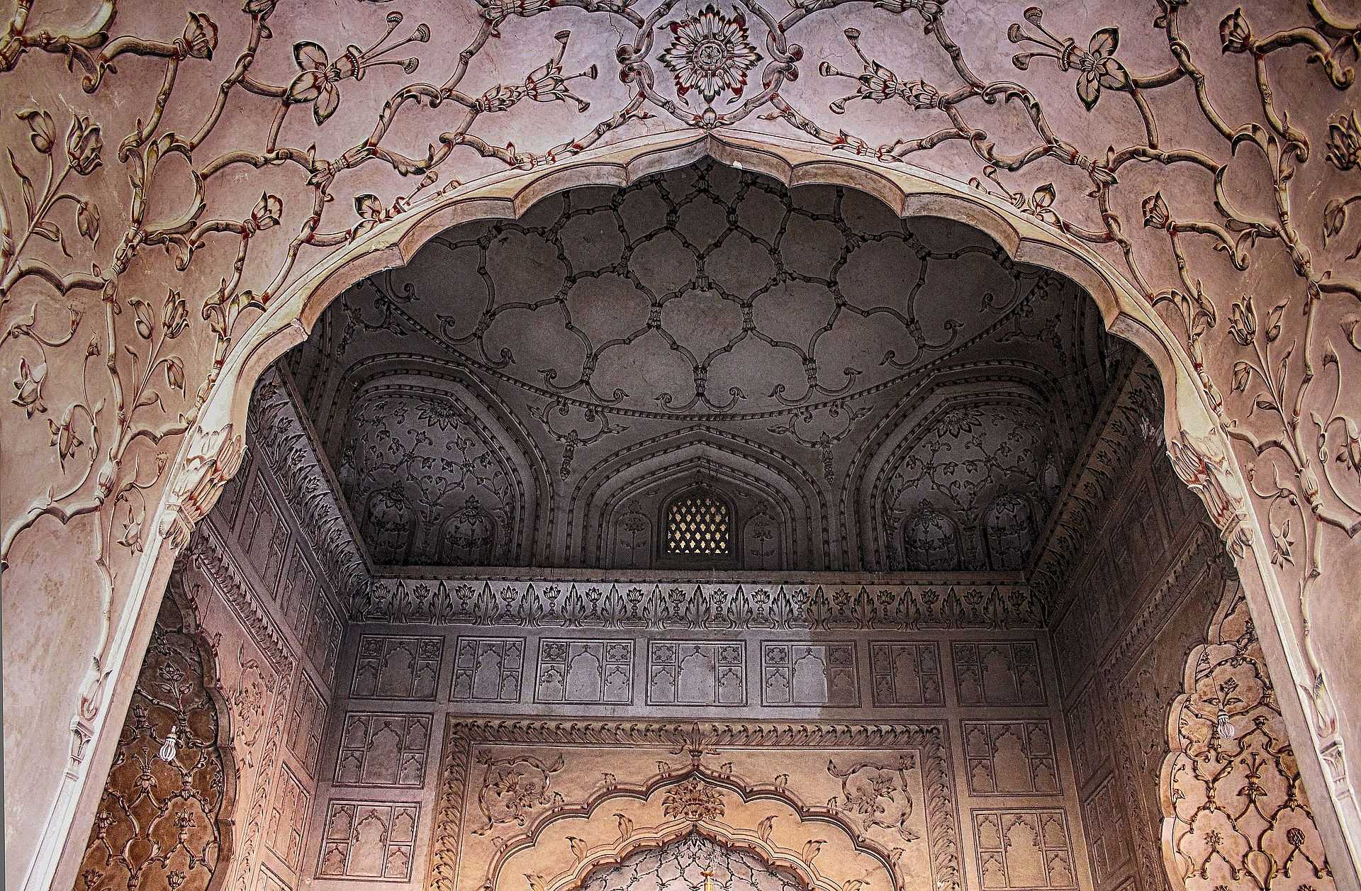 Наиболее известными сооружениями комплекса форта Лахор являются строения, которые появились в первой половине 17 века, в период правления Шаха Джахана. Зеркальный дворец (Шиш-Махал) был построен в 1631 году в качестве личных покоев жены падишаха, но также использовался как гарем. От пышного убранства дворца до наших дней сохранилось немного, но даже глядя на остатки чудесных мозаик из разноцветных зеркал, на резную лепнину и ажурные арочные своды потолков можно представить, какая роскошь царила здесь в годы расцвета Зеркального дворца. Павильон Наулакха с наклонной крышей, выстроенный примерно в тот же период, что и Зеркальный дворец, был искусно инкрустирован самоцветами, которые выкладывались в виде узоров по резному мрамору.