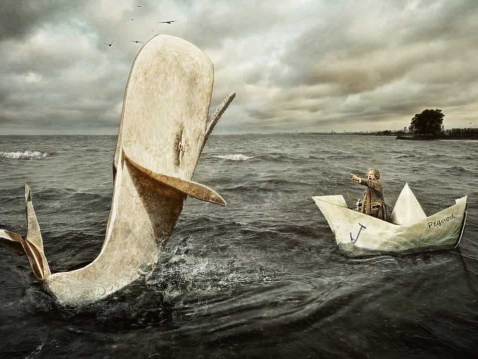 Далее мы узнаем, что капитал лишился ноги именно при погоне за белым кашалотом, и во чтобы то ни стало хочет поймать его. Далее мы узнаем, что это морское существо наводит ужас на все суда, которые встречает на своем пути. Дело в том, что он разрушает их, оставаясь совершенно невредимым. Отсюда даже появилась легенда о том, что существо попросту неуязвимо.