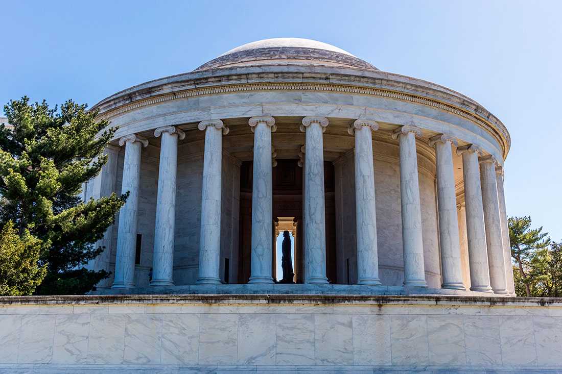 Еще одна достопримечательность Национальной аллеи – мемориал Джефферсону – является данью памяти третьему президенту Соединенных Штатов и призвана увековечить взгляды Томаса Джефферсона как государственного деятеля и философа.