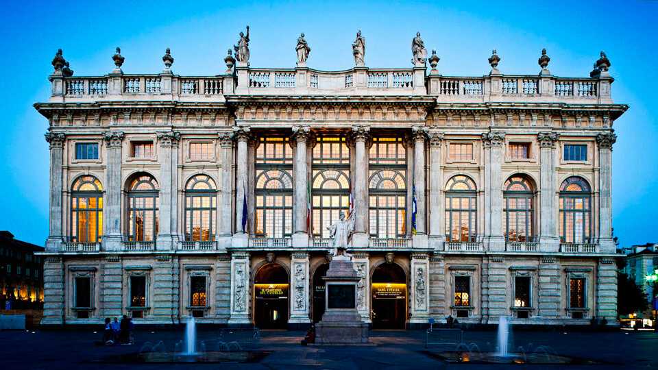 Палаццо Кариньяно, построенное из кирпича в типичном стиле барокко, имеет центральный фасад овальной формы. На создание этого фасада архитектора вдохновила церковь Сан Карло алле Кватро Фонтане работы Франческо Борромини. В этом здании в 1820-м году родился первый король объединенной Италии Виктор Эммануэль II. С 1848-го по 1861-й годы в Палаццо Кариньяно заседала палата депутатов Субальпийского Парламента.