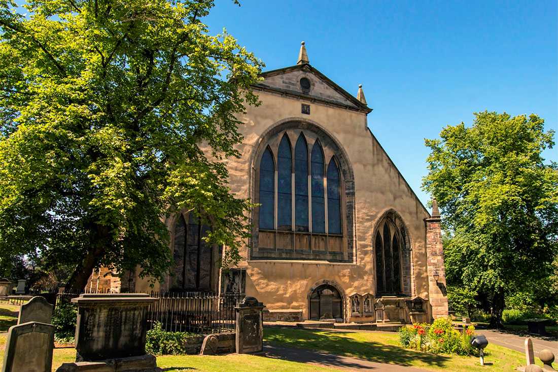 На территории церкви находится старое городское кладбище, место последнего упокоения ряда знаменитых шотландцев, в том числе поэта Аллана Рэмзи и Джеймса Хаттона, которого многие считают отцом современной геологии.