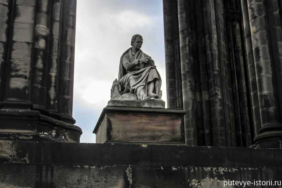 Внизу монумента установлена статуя сидящего В. Скотта, выполненная скульптором Д. Стилом из каррарского мрамора.