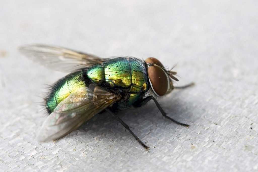 Тело мухи покрывают разноцветные переливающиеся чешуйки.
