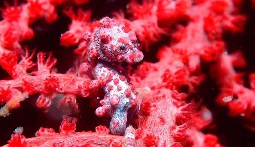 Эти невероятные существа, пожалуй, имеют самую лучшую защитную окраску. Крошечные морские коньки, длиной всего полтора сантиметра, идеально сливаются со своей естественной средой обитания, коралловыми рифами, выгодно используя при этом как свой размер, так и свою удивительную окраску. Карликовые морские коньки были обнаружены случайно на кораллах, которые выловили для изучения.