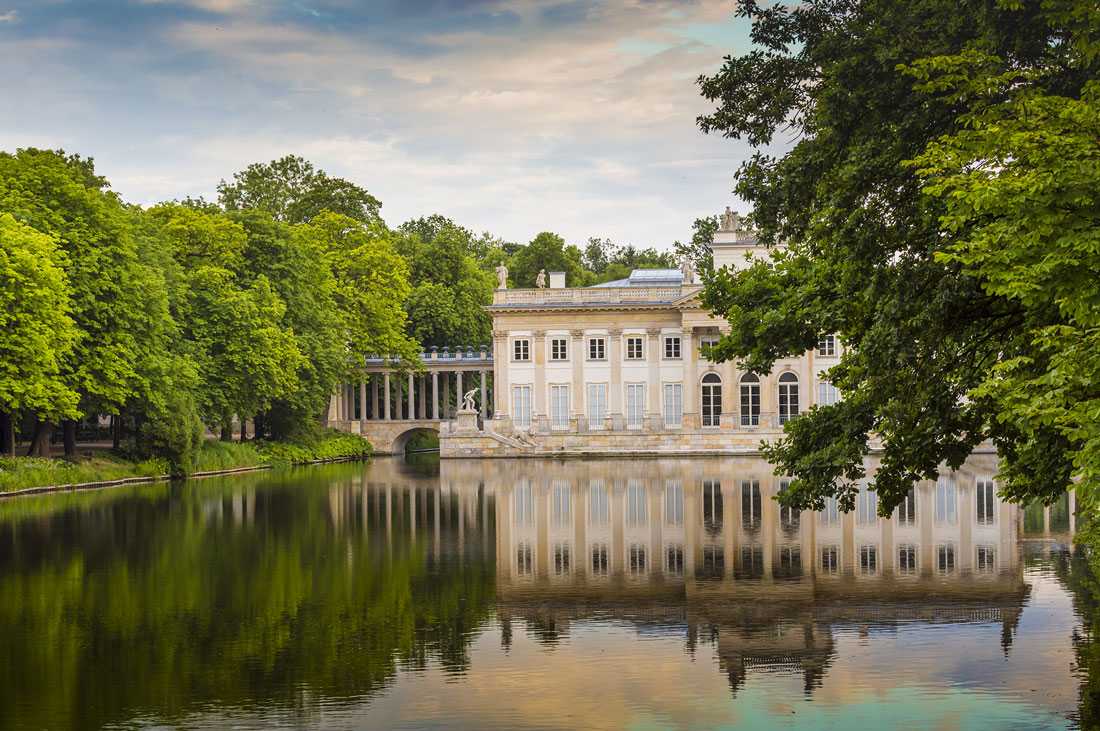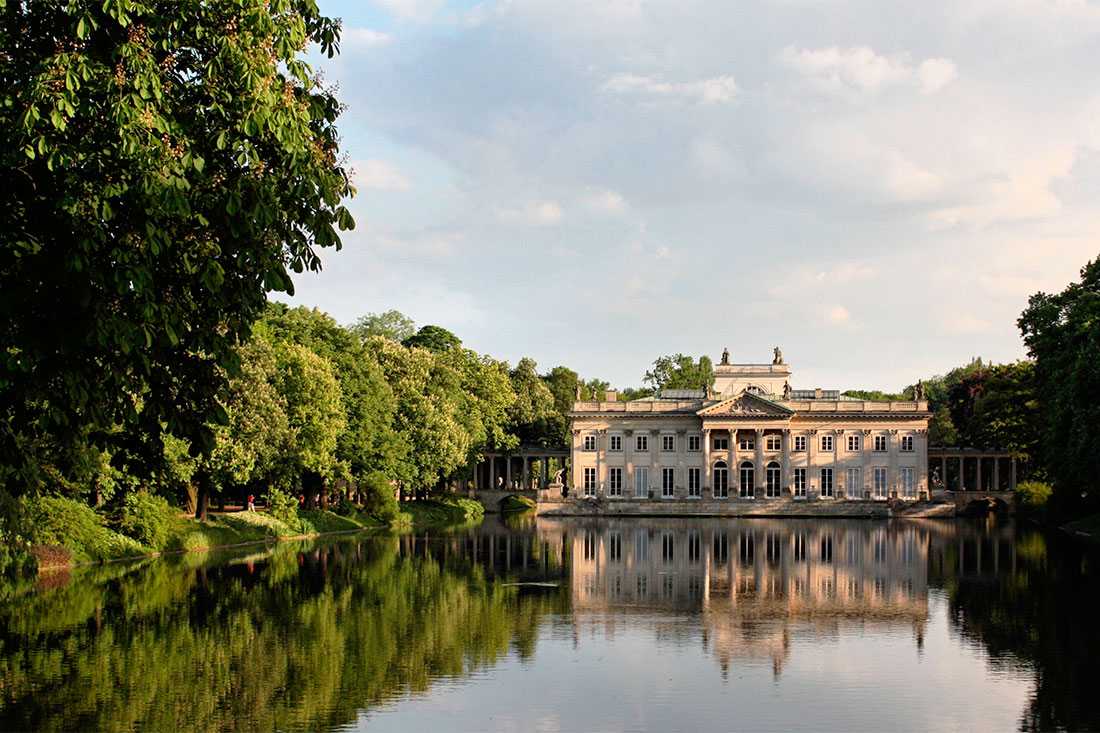 В парке Лазенки есть озеро с искусственным островом на котором стоит красивый классический дворец, построенный в XVIII веке королем Станиславом II Августом. Здание было преобразовано из барочного купального павильона, возведенного для графа Станислава Любомирского веком ранее, и сохранило часть архитектуры оригинального строения.