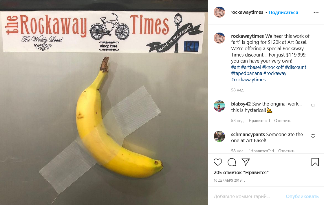 Если самостоятельно придумать косплей не получается, следите за вирусными трендами. Можно хорошо продвинуться на волне чужого хайпа, если вовремя ее поймать и удачно обыграть. Например, в конце 2019 года художник приклеил банан скотчем к стене и продал его как инсталляцию за 120 тысяч долларов! Тогда на эту тему не пошутил только ленивый.