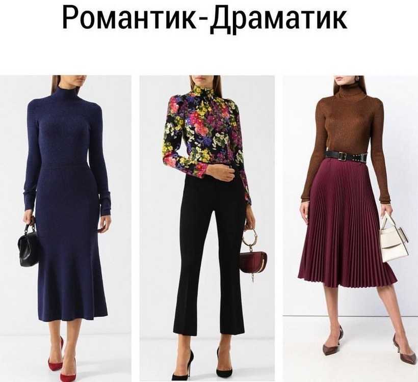 Драматик-романтик – своеобразная смесь угловых форм с округлыми. Согласно рекомендациям драматику-романтику по Ларсон предписывают исходить из соотношений между очертаниями своего тела. Драматические линии выглядят крупно, а романтические гораздо мягче. Создаётся сложная ситуация. В таком случае следует разобраться, какие части тела относятся к какому типу. Если лицо обладает романтическими чертами в противовес телу, следует создавать вокруг него такой же ореол. А жилет и юбка могут соответствовать драматическому стилю.