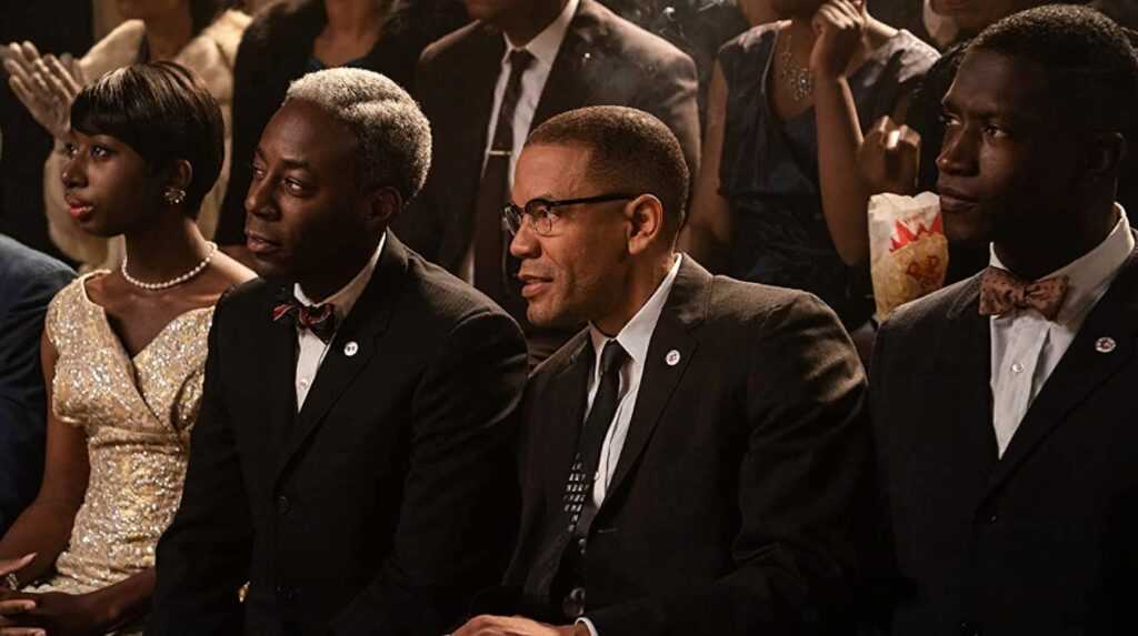- Найджел Тэтч в качестве Малькольм Икс, старый друг Бампи и одна из видных фигур в Нация ислама