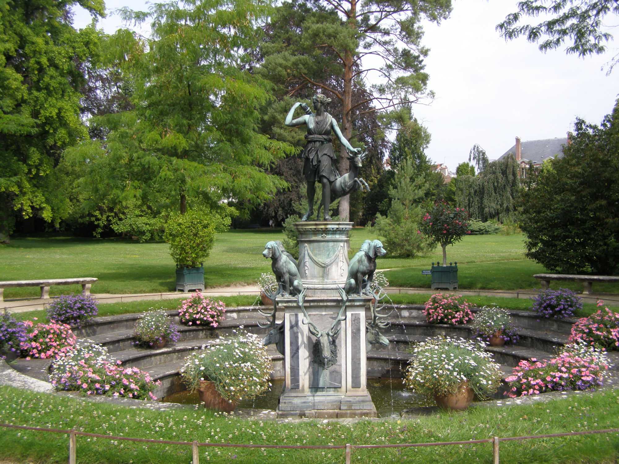 - Дворец Фонтенбло окружен садами, самый маленький из которых — сад Дианы, получивший свое имя по названию статуи, изображающей богиню охоты — Диану с оленем