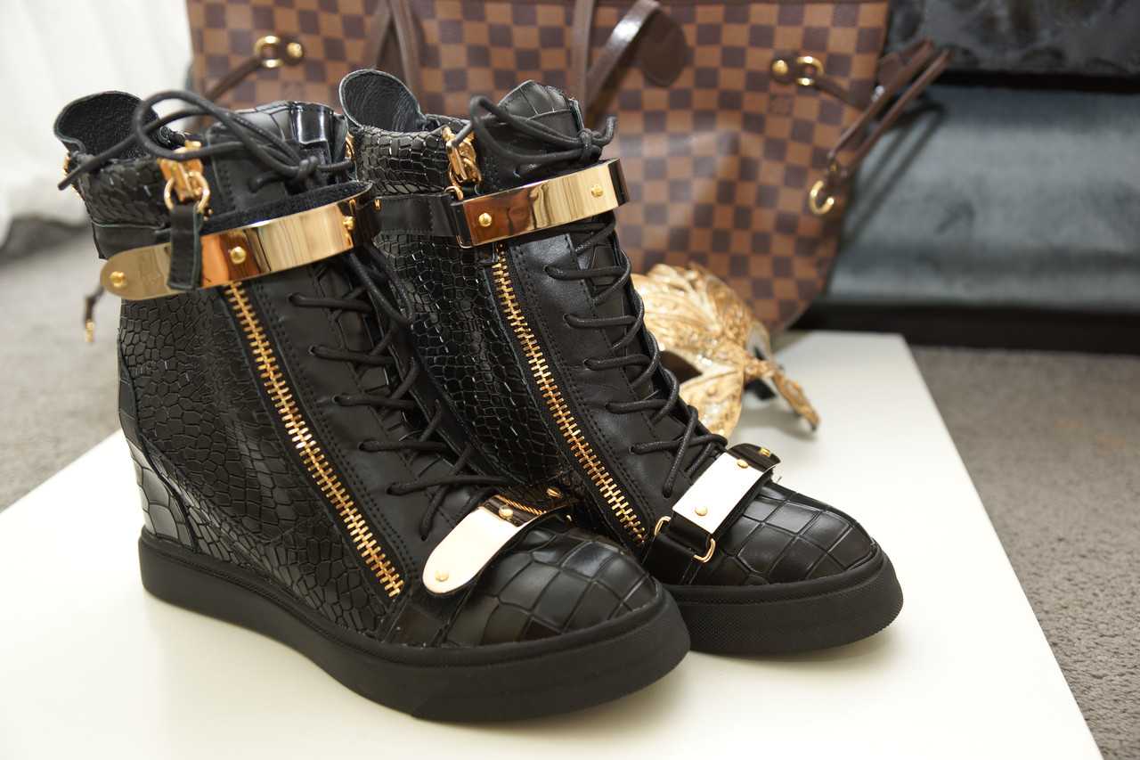 Порой кажется, что сникерсы были созданы именно для женщин: настолько поражают разнообразием разработанные для них варианты кроссовок на каблуках — высокие и низкие, закрытые полностью или состоящие из носка, пятки и отверстий по бокам, с замаскированной танкеткой или, наоборот, с подчеркнуто открытым каблуком. Чаще всего используется следующее оформление подошвы: