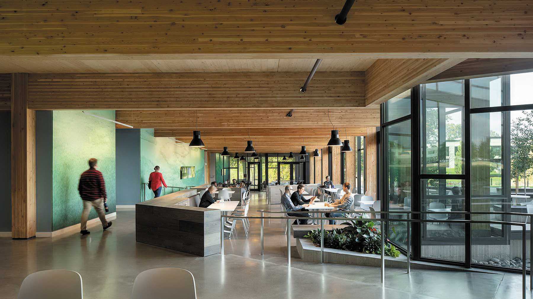 Рис. 4. Результаты проектирования зданий с использованием перекрестно клеенной древесины в штаб-квартире First Tech.Изображение предоставлено Joel B. Sanders