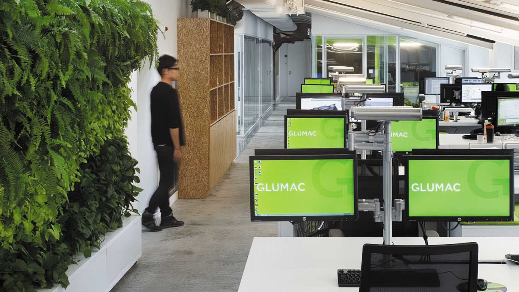 Рис. 3. Мы любим нашу зеленую стену в офисе в Шанхае. Но пришло время выйти за рамки этих интеграций, чтобы действительно перейти к следующему этапу «здорового» проектирования зданий.Изображение предоставлено компаниями Gensler и Glumac