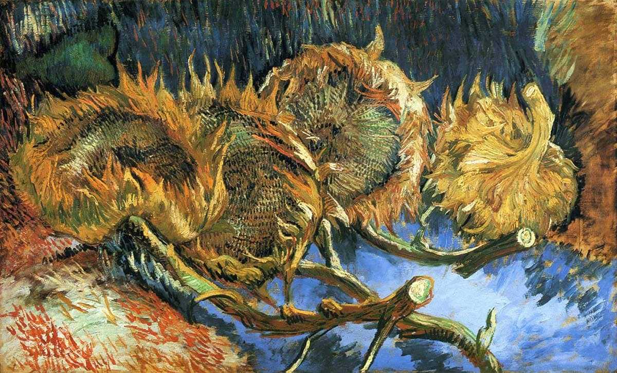 Ван Гог написал две серии «подсолнухов» в Арле, Франция: четыре между августом и сентябрем 1888 года и один в январе 1889 года; версии и копии обсуждаются среди искусствоведов. Картины маслом на холсте, изображающие увядающие желтые подсолнухи в вазе, теперь выставлены в музеях Лондона, Амстердама, Токио, Мюнхена и Филадельфии.