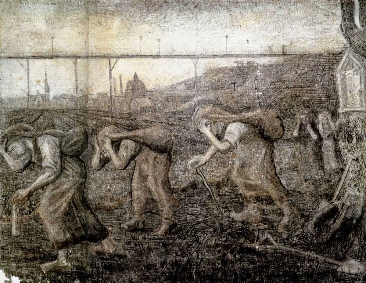 Затем, проведя несколько месяцев в евангелической школе в Брюсселе, Винсент становится проповедником в Боринаже, обширном угледобывающем районе в Бельгии, заселенном в основном едва сводящими концы с концами шахтерами. Этому делу Ван Гог отдается со всей своей страстью, раздавая беднякам деньги и одежду и не имея никаких доходов.