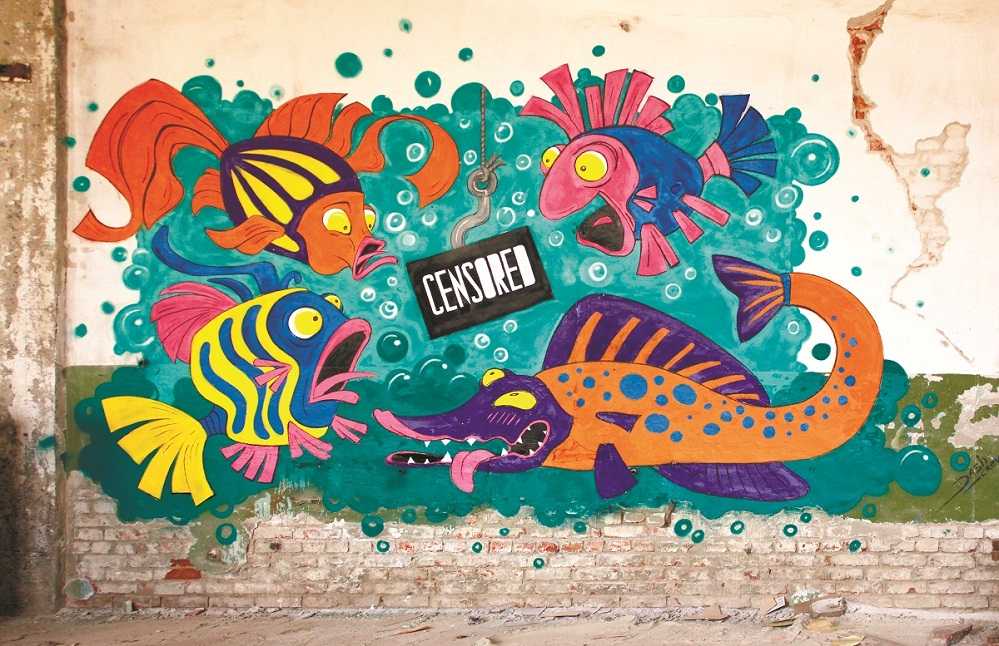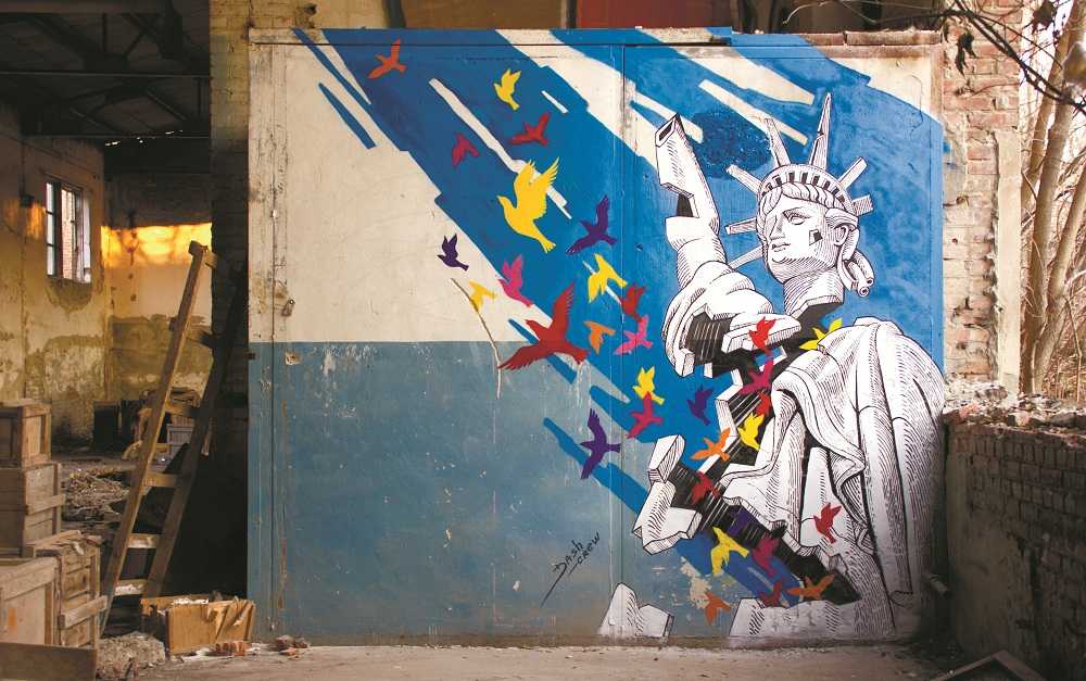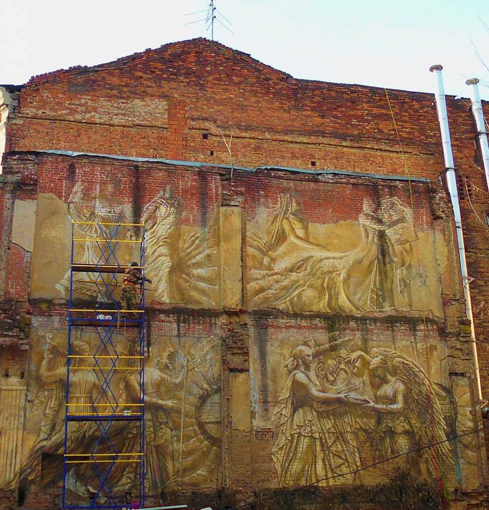 Учились кто где: Таня – в новочеркасском политехе, мы с Аней – в Ростовской академии архитектуры и искусств (я – на архитектурном факультете, она – на декоративно-прикладном). Кроме того, у всех в прошлом была художка, и рисовать мы более-менее умеем. Наша основная работа практически не требует таких навыков, а навыки просят применения. Идея создать команду пришла этим летом, и мы за полгода обжили старые заводские цеха. Там сейчас руины, тишина, и никто не мешает. Правда, иногда приходилось таскать старые ящики и заделывать дыры в стенах, чтобы рисовать. Там мы и сделали несколько работ.