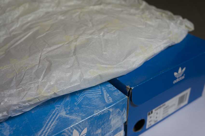 Стелька кроссовок бренда Adidas всегда качественно проклеена. Проверенный способ заподозрить копию – понюхать кроссовки в районе стельки. Клеем далеким от слова «качество» пахнет только fake.