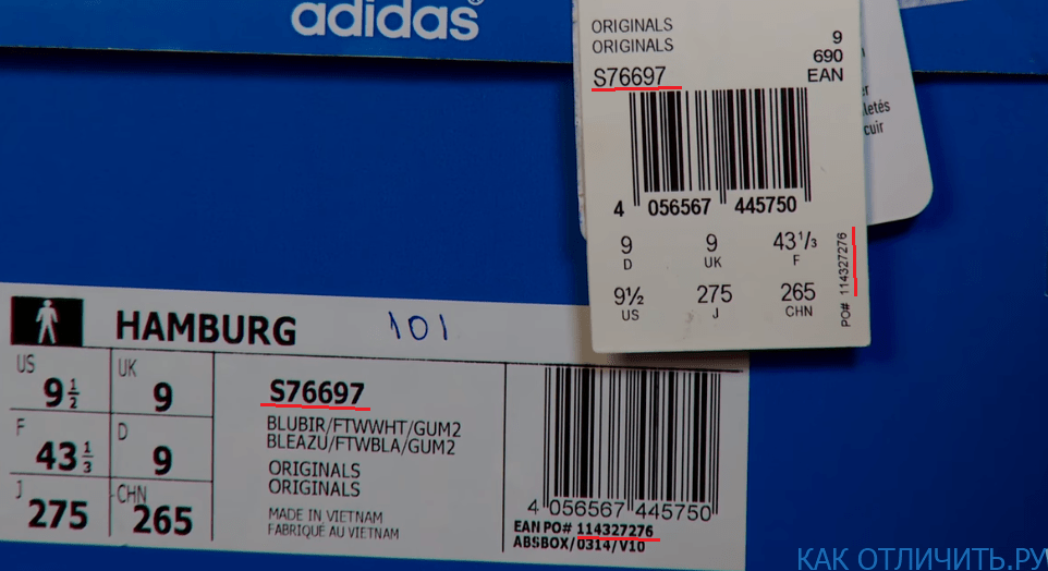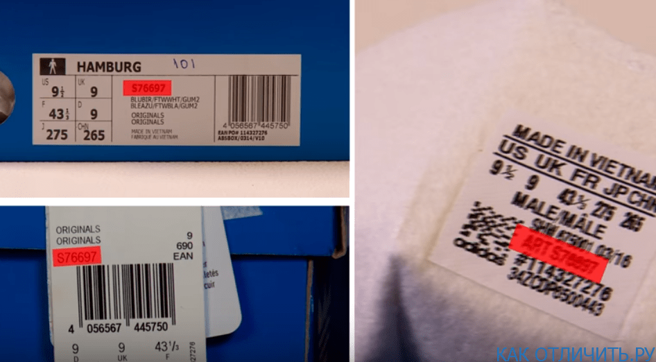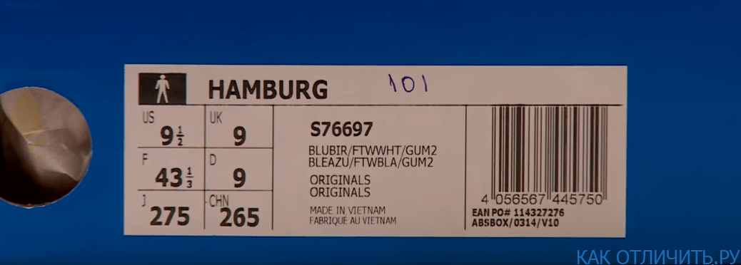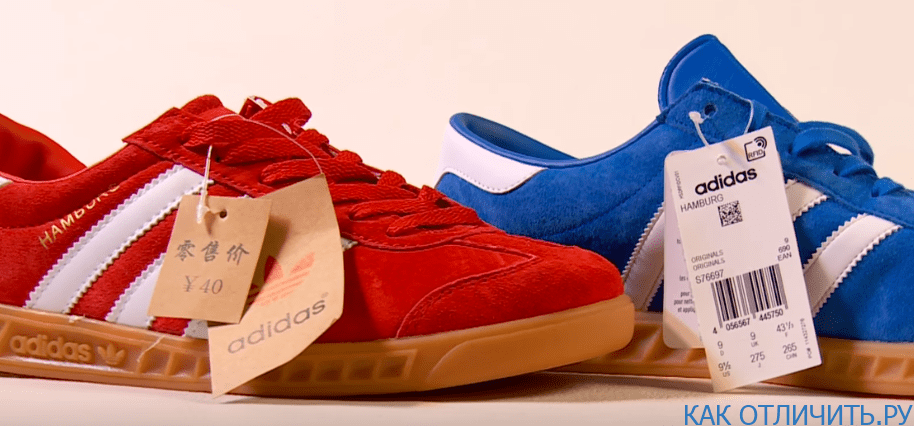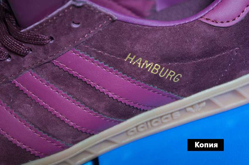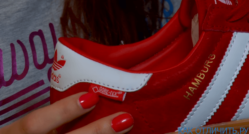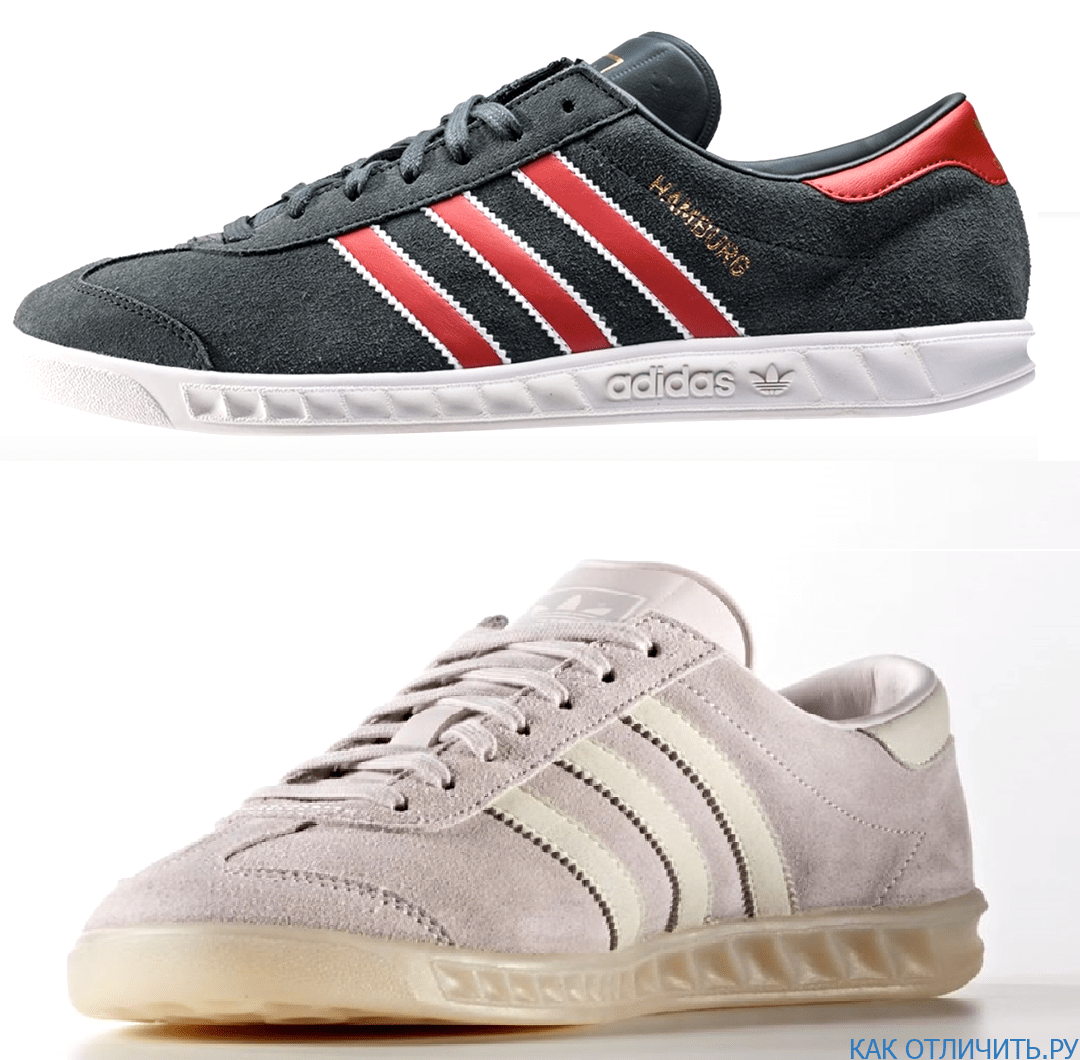 Нужно помнить! Имя бренда на стельках истинных Adidas Hamburg всегда располагаются в разных направлениях.