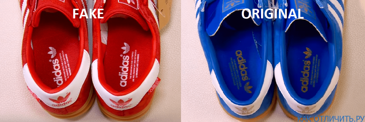 На стельках в оригинале надпись Adidas располагается в разных направлениях. В подделке же надпись в одном направлении.