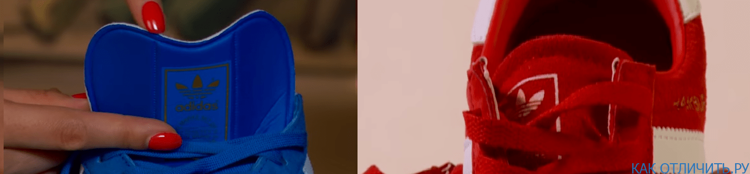 Язычок модели Adidas Hamburg изогнут кверху, обладает нестандартно большой длинной, имеет петлю для шнуровки. Язычок – это третье место, на котором должна быть обозначена информация относительно кроссовок. Если на обратной стороне язычка нет наклейки с фабричной информацией, то вы столкнулись с подделкой. Копию от оригинала отличить с помощью язычка кроссовок можно по трем основным признакам: