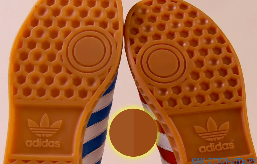 Неокрашенная резина подошвы медового цвета – визитная карточка модели Hamburg.Подошва в оригинальной версии полупрозрачная и сквозь нее просвечивается фирменный знак Adidas – три полоски.