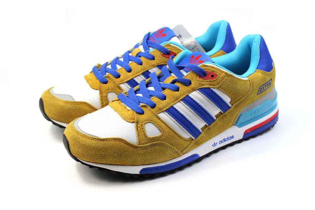AdidasZX 750 Men’s сине-желтые. Данная расцветка очень яркая и стильная. Дизайнеры выбрали очень мягкие оттенки, благодаря чему, кроссовки смотрятся очень оригинально и делают образ завершенным и ярким.